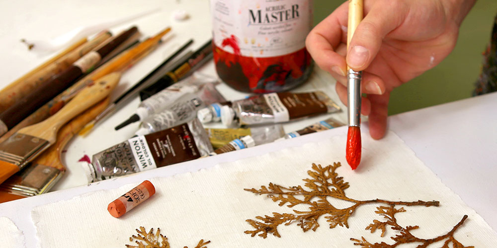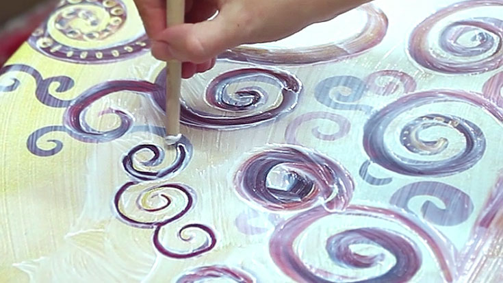 Um pintor especializado na opção Premium Print coloca na tela o gel acrílico com a ajuda de um pincel especial. Os traços do pincel ficam modelados de conformidade com as linhas e cores da imagem impressa, de maneira a dar relevo ao desenho.