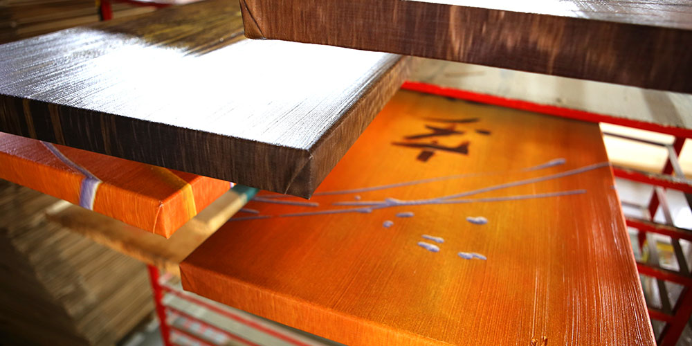 O quadro impresso coberto com gel precisa de secar, o verniz a secar torna-se transparente e durável. Agora também, assim como nos etapas anteriores, quando o quadro está seco passa pelo exame minucioso.