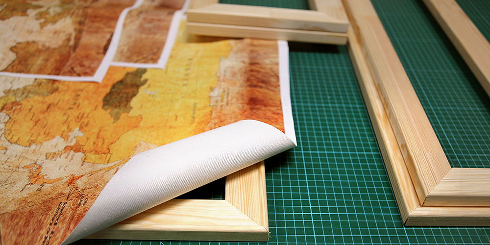 Para cada uma das partes do quadro preparamos um bastidor de tamanho adequado. O bastidor é feito de tábuas de pinho. Com ferramentas especiais esticamos a tela em bastidores e asseguramos os lados. A tela está pronta para ser entregue em mãos de um profissional de Premium Print.