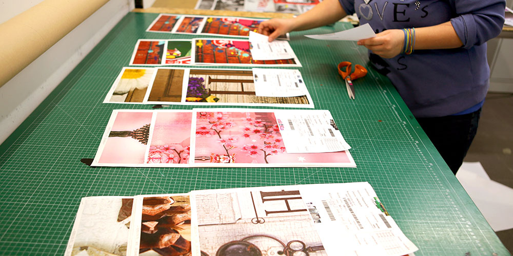Quando o nosso sistema de encomendas regista pagamento pelo quadro encomendado o departamento de produção começa a trabalhar. Começamos por imprimir a ordem de realização da encomenda que diz como vai ser a decoração que receberá.